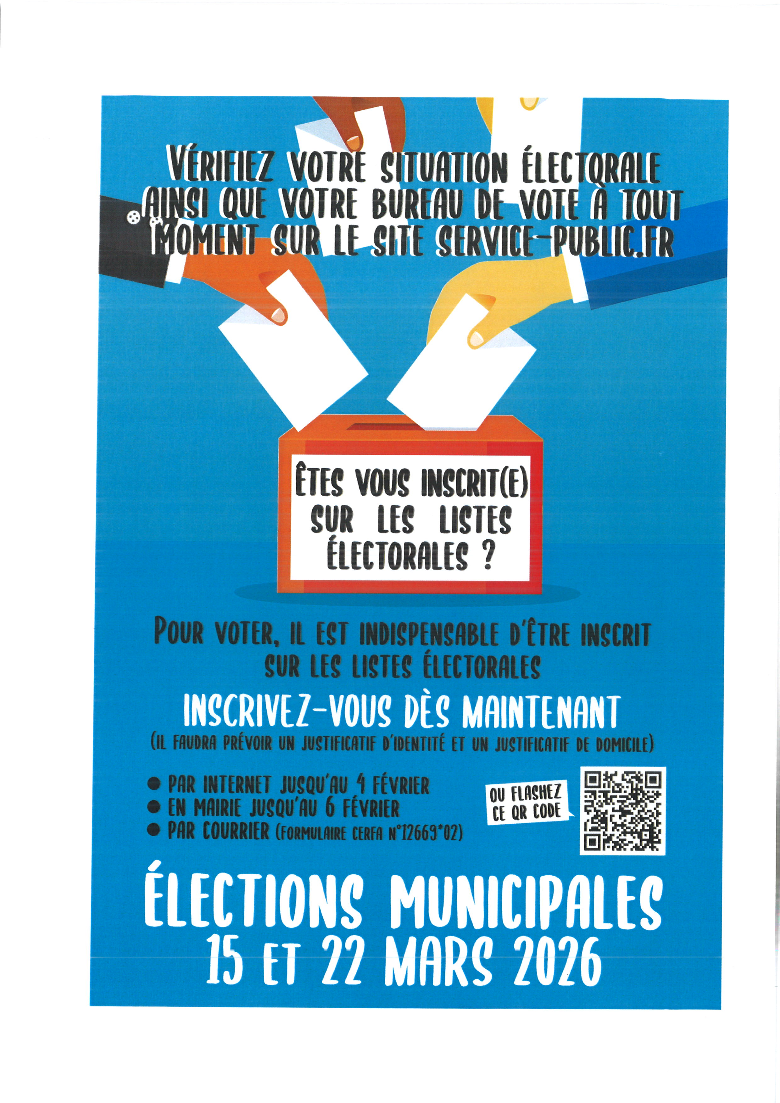 Pour pouvoir voter aux prochaines élections, il est nécessaire de vous inscrire sur les listes électorales de votre commune.
